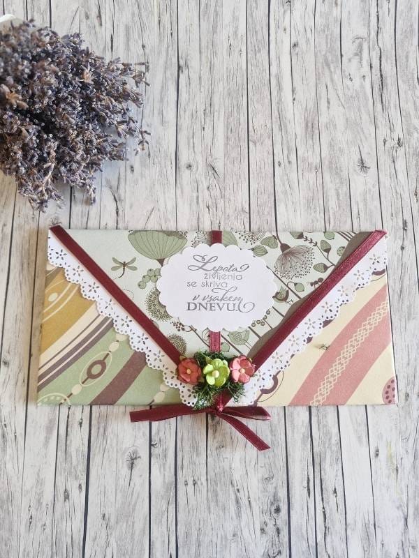 - Ročno Delo: Vsaka kuverta je unikatno izdelana z ljubeznijo in pozornostjo do detajlov.